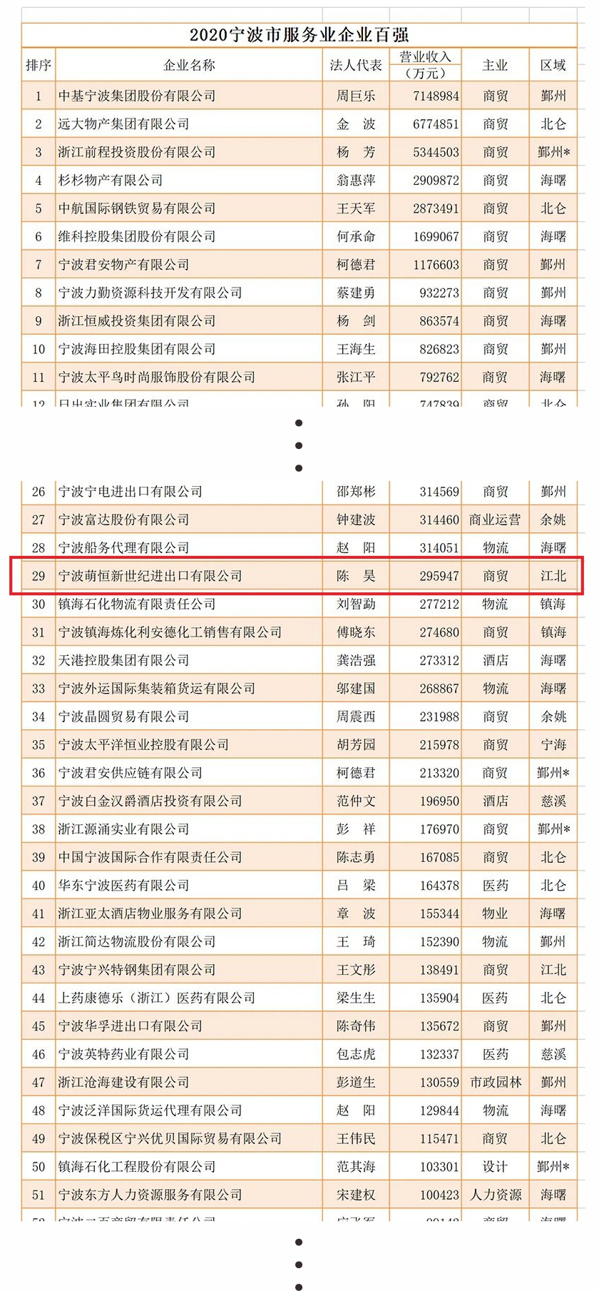2020寧波企業百強榜發布,寧波萌恒榜上有名