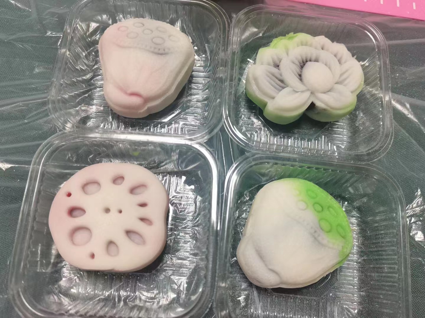 活動結(jié)束后,大家紛紛和自己的作品合影,贊嘆做出的月餅成品,紅白相間的蓮花,綠意盎然的蓮蓬和蓮葉,白胖的蓮藕,個個細(xì)巧精致,再加上精美禮盒的加持,都表示一定要帶給家人嘗嘗,這樣的月餅吃起來肯定別有一番滋味。