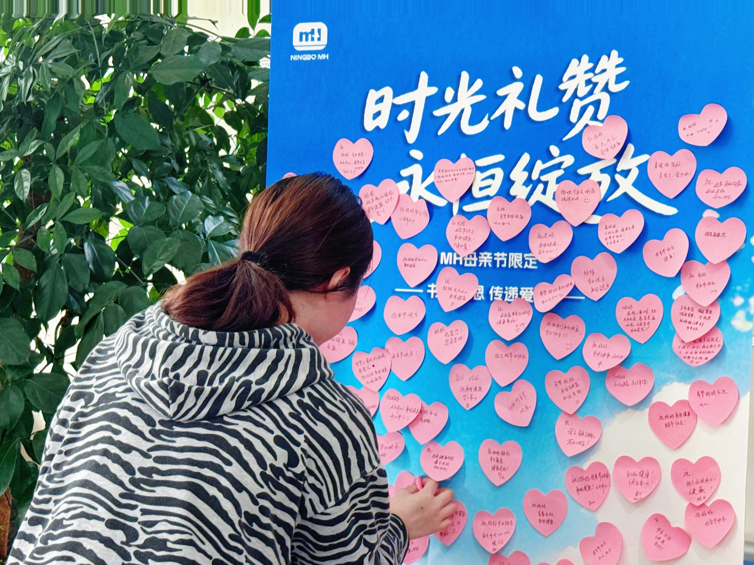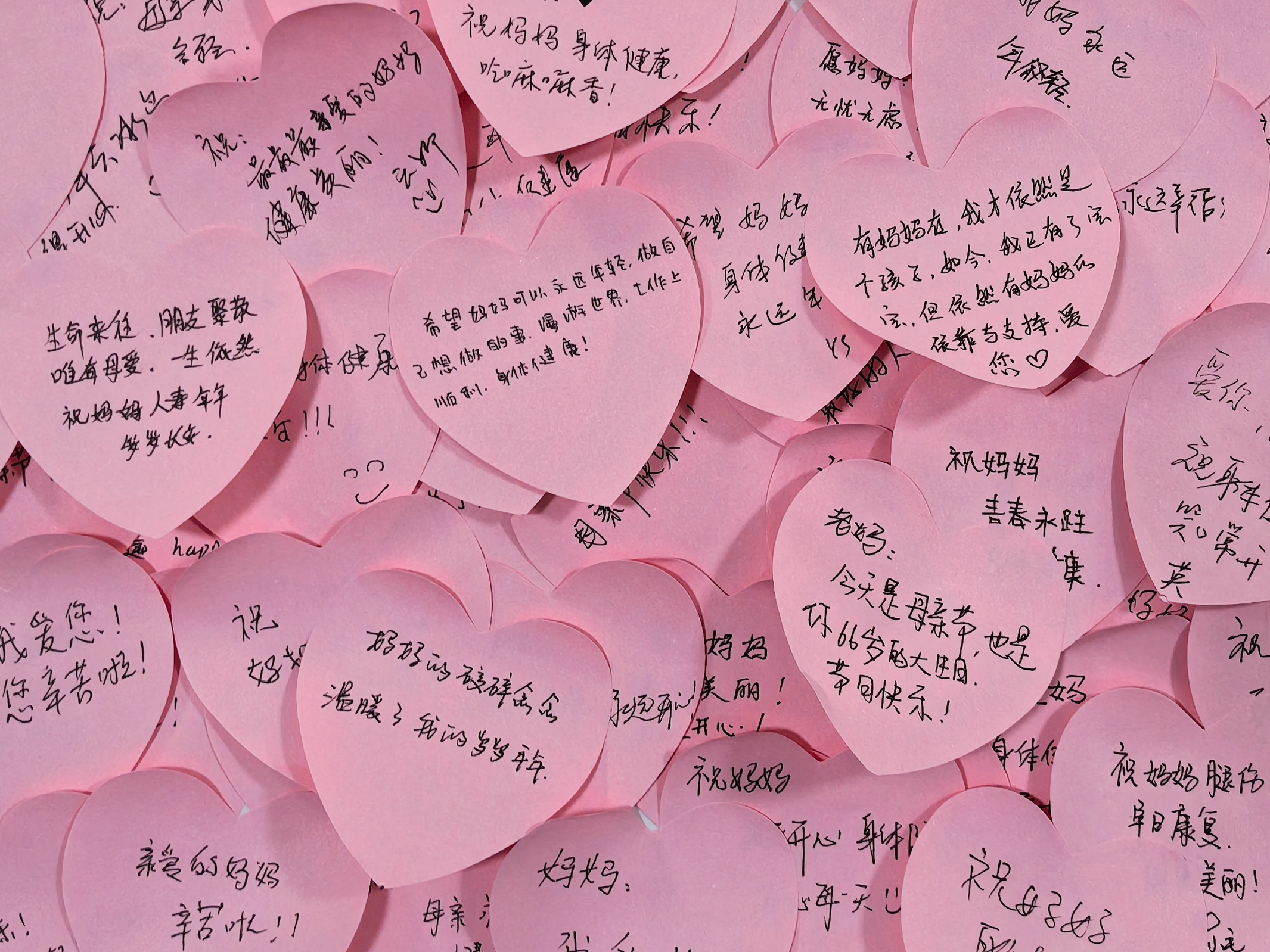 一樓大廳同樣熱鬧非凡,小伙伴們?cè)趷坌谋憷N上紛紛寫下對(duì)媽媽的祝福,并張貼在留言板上。那些真摯的文字,定格了我們對(duì)媽媽的溫情告白。還有小伙伴感言道:”好巧,今天剛好是我媽媽的生日,這也太有儀式感了。”說完就拿出手機(jī)拍下祝福,將這份心意實(shí)時(shí)傳遞給媽媽。