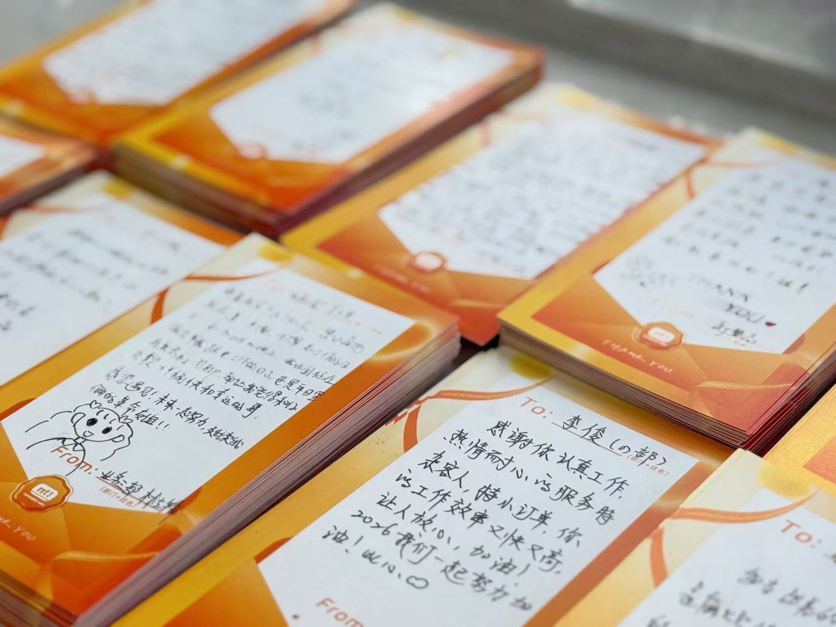 平日我們常忙于工作,可能忽略了表達(dá)謝意。此次活動(dòng)特別設(shè)置線上、線下雙渠道感恩傳遞方式,每個(gè)人都能找到適合自己的表達(dá)方式。線上發(fā)送感恩留言,讓謝意穿越網(wǎng)絡(luò),實(shí)時(shí)抵達(dá);線下親手書(shū)寫(xiě)卡片,將感謝化為文字,永久珍藏。下午同事們拿著卡片和禮物,親手交到想要感謝的人手中,所有的情誼在彼此交流的眼神中流淌。有人感謝伙伴的協(xié)作,有人感恩師父的指導(dǎo),有人感激團(tuán)隊(duì)的配合,每一個(gè)感謝背后,都藏著一個(gè)溫暖的故事。