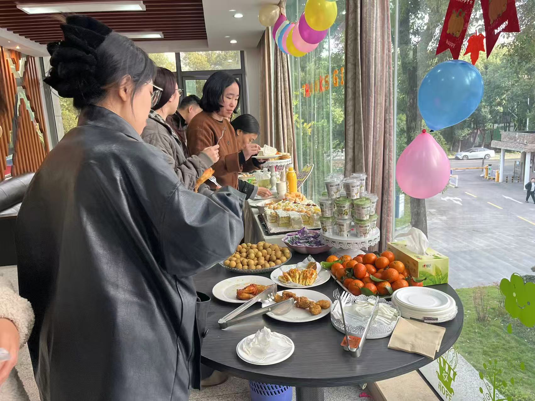 下午三時(shí),陽(yáng)光透過(guò)玻璃窗為行政樓的休息室鋪上了一層暖色。制造事業(yè)部寧波基地的小伙伴們暫時(shí)放下手頭工作,相聚于此,開(kāi)啟一場(chǎng)溫馨茶敘。桌上擺滿精心準(zhǔn)備的茶點(diǎn),香氣氤氳。大家在輕松的氛圍中開(kāi)啟“溫暖回溯”分享環(huán)節(jié),聊起工作中的互助、攻堅(jiān)時(shí)的并肩、以及日常里那些被悄然記下的善意。