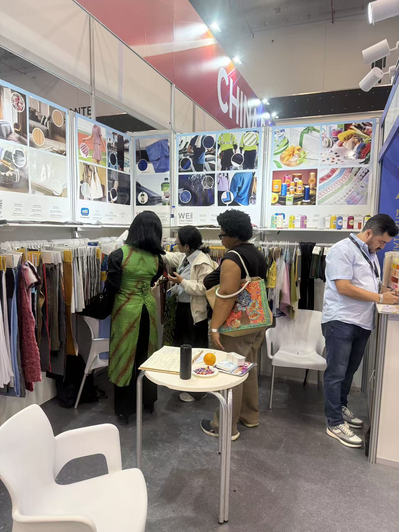 萌恒國貿(mào)事業(yè)部業(yè)務三部銷售代表攜公司產(chǎn)品精彩亮相。雖然本屆展會的綜合性特征使得前來洽談的專業(yè)客戶有所分流,但其所具備的區(qū)域輻射效應卻為公司帶來了意外的收獲。展會現(xiàn)場,我司展位接待了不少來自哥倫比亞、秘魯、厄瓜多爾等中南美洲國家的客商,展出的線類和沙發(fā)布產(chǎn)品也獲得了廣泛關(guān)注與積極反饋,銷售代表與客戶深入交流,精準挖掘潛在需求,為后續(xù)合作奠定了堅實基礎。